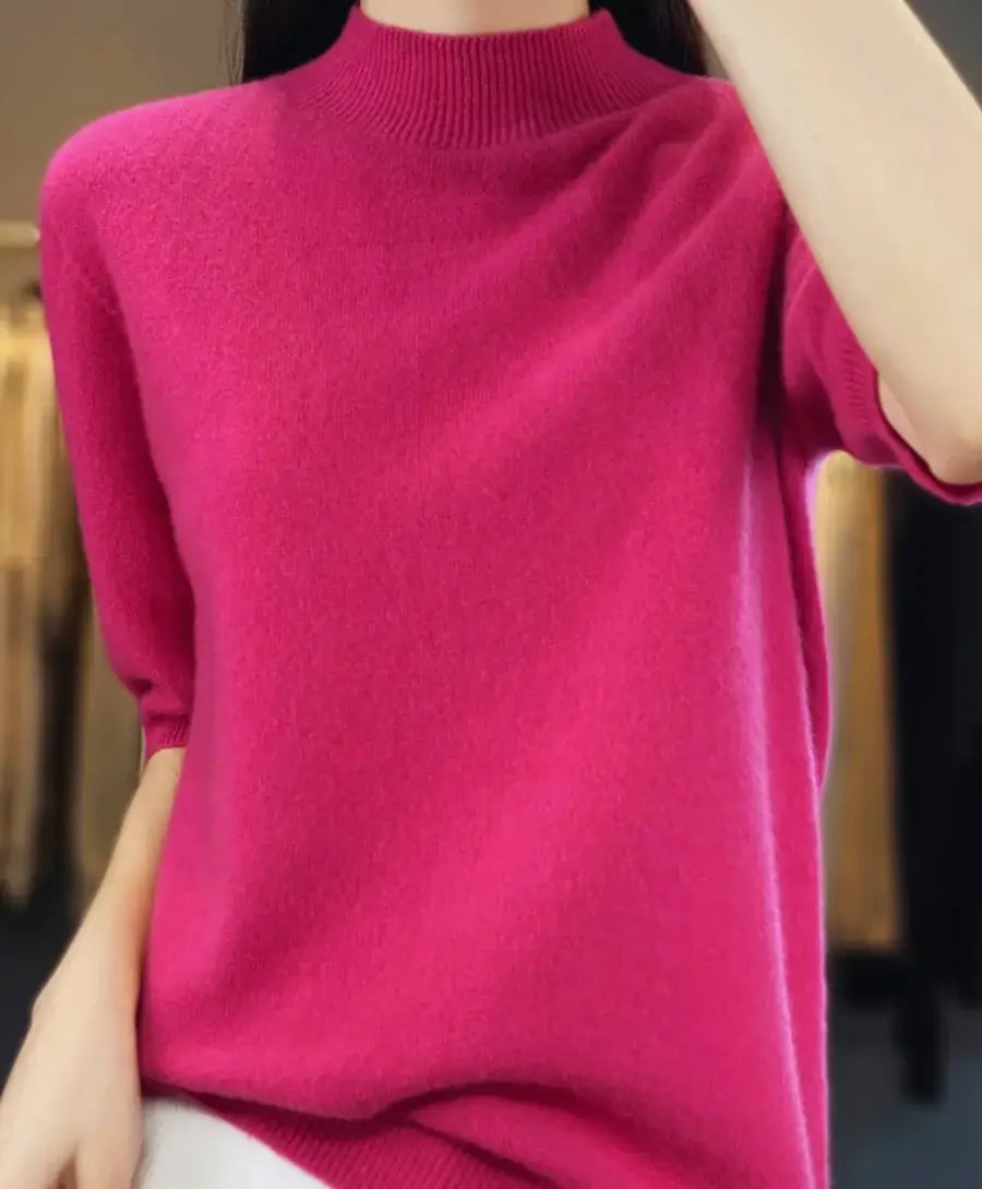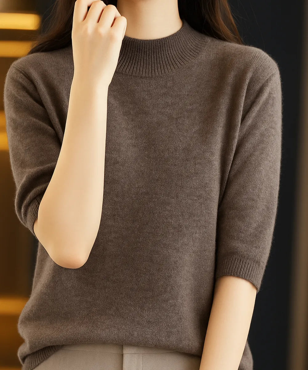 The women’s cashmere feel knit half sleeve top blends softness and structure in a refined way.
