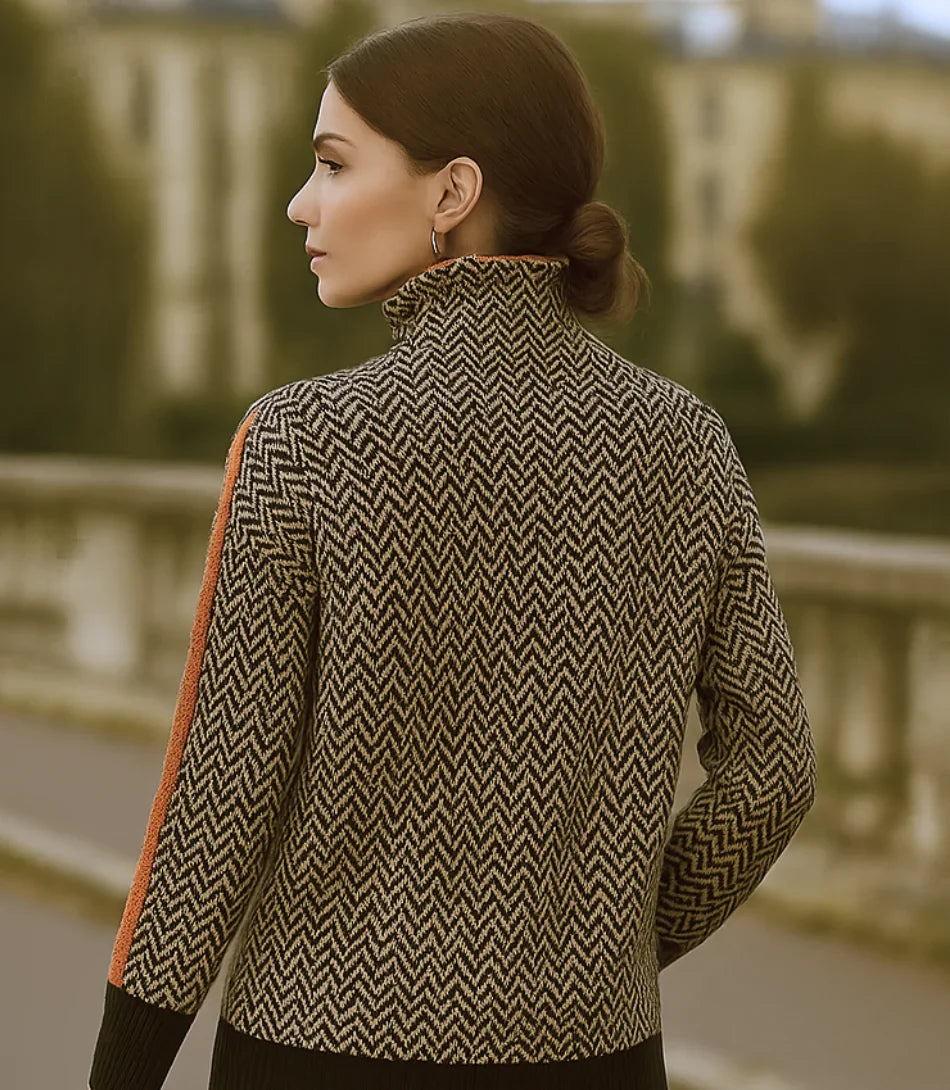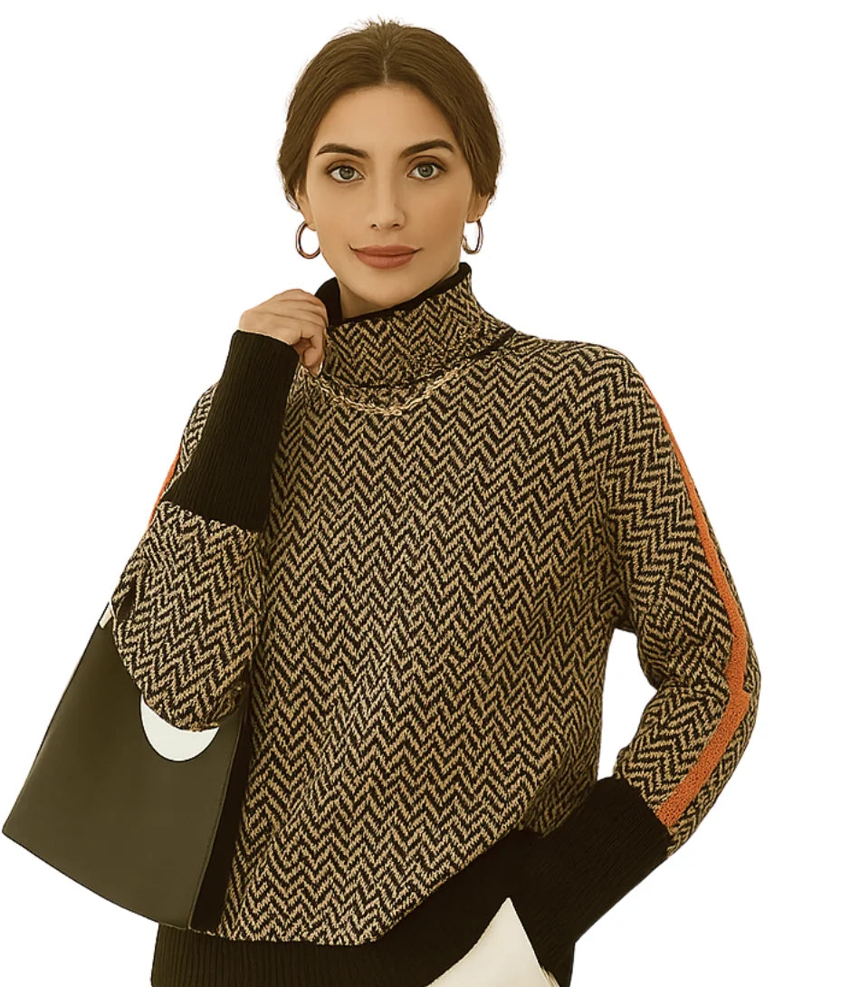 The structured knit flatters your shape without clinging, while the high neck and contrast trim on the sleeves add a touch of exclusivity that elevates any outfit.