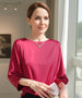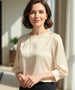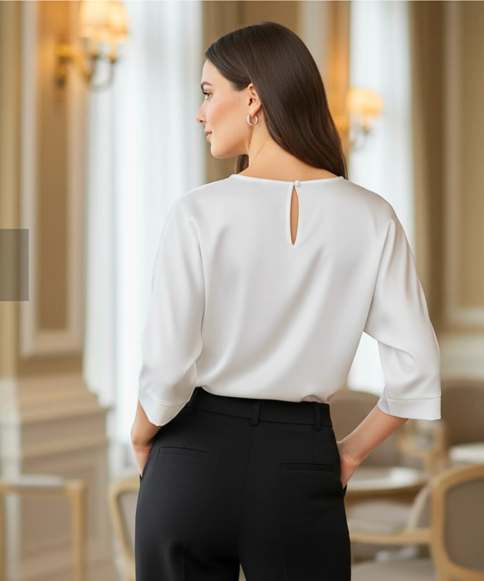 This is the kind of piece that instantly elevates your outfit. This women’s satin dressy top with 3/4 sleeves enhances posture with lightness and delivers effortless sophistication.