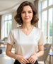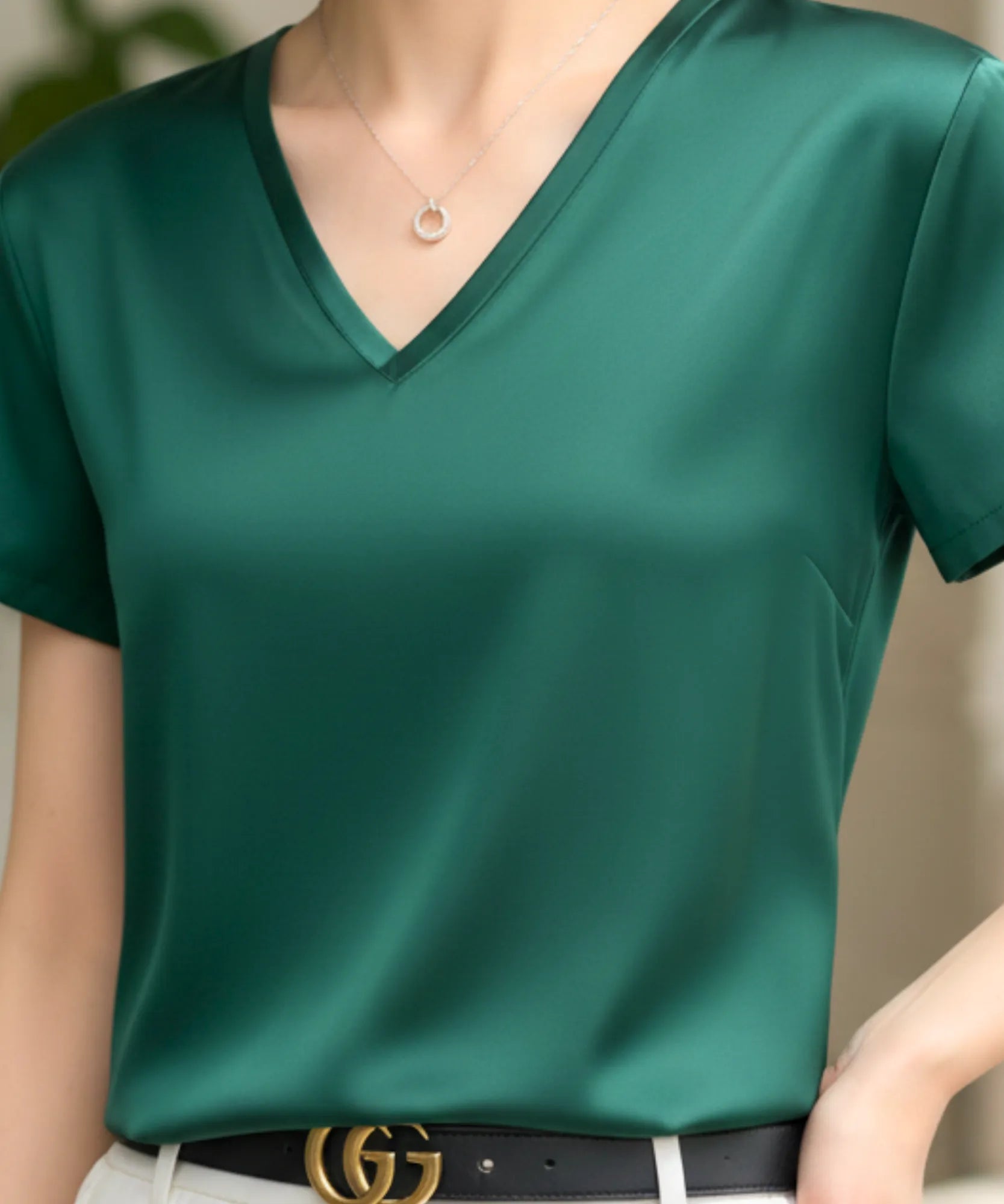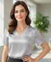 The V-neck satin dressy top transitions seamlessly between polished work looks and more relaxed, elegant outfits. It is the kind of piece you put on and instantly feel well-dressed.