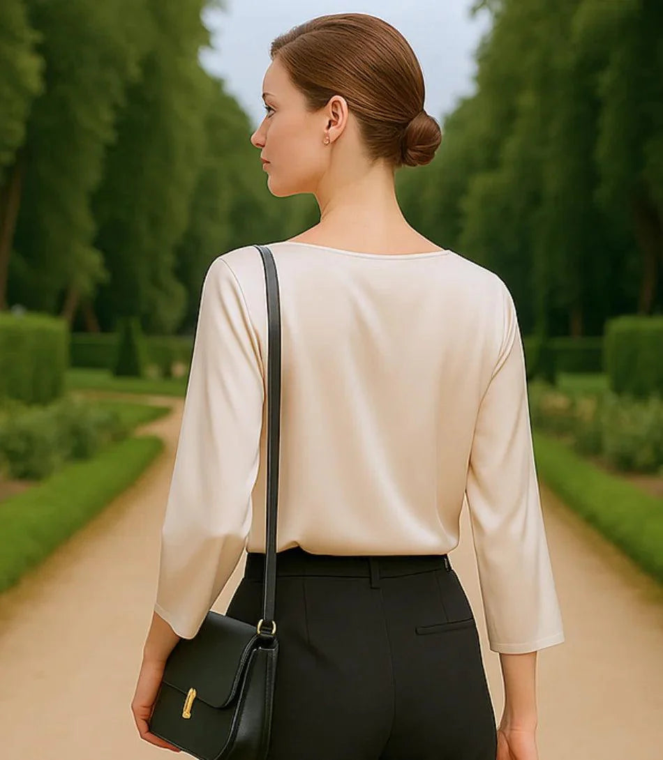 This women’s satin dressy top with wide sleeves adapts effortlessly to different settings, offering style without the need for constant outfit changes.