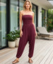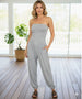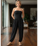 During remote work days, this women’s strapless long knit jumpsuit delivers a polished appearance while allowing complete freedom of movement.