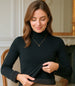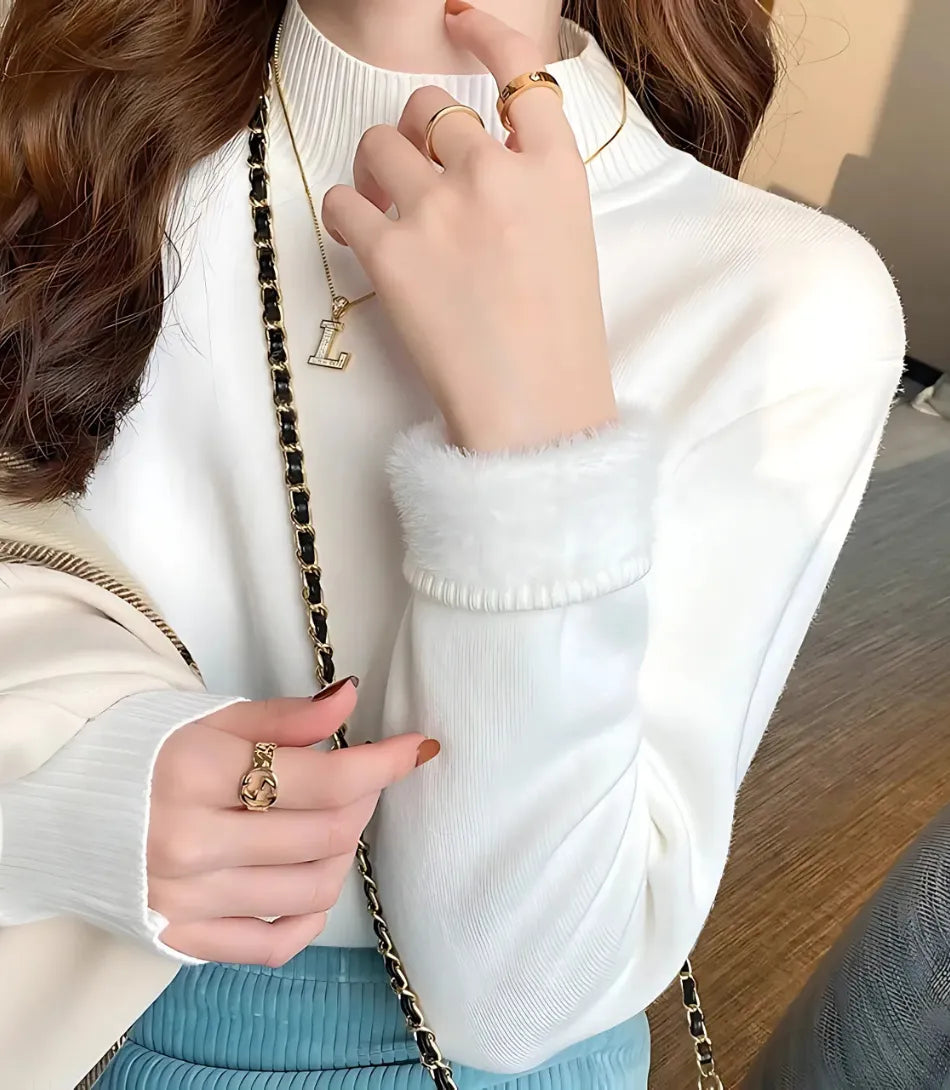 The thick knit fabric with brushed lining resembles the softness of cashmere and delivers that sophisticated air effortlessly.
